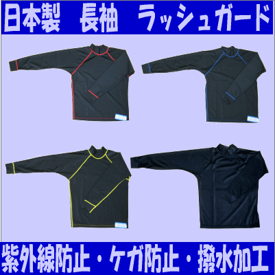 今ならレビューを書けば【送料無料】ステッチ色が鮮やかで大人気!日本製ラッシュガード 長袖(黒)ステッチ4色(黒・赤・青・黄)より選べます!UV91%以上カット ★特注黒・長袖☆【2_sp0106】【smtb-tk】